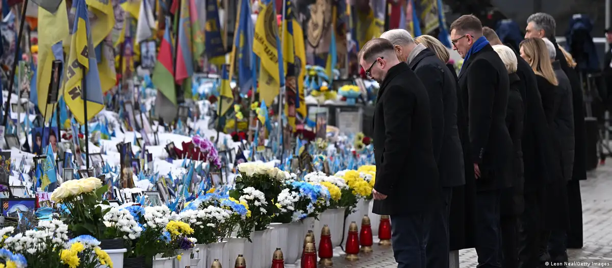 W czwartą rocznicę rozpoczęcia rosyjskiej inwazji na Ukrainę przywódcy UE uhonorowali w Kijowie walkę Ukrainy o przetrwanie. Kraj będzie jednak musiał poczekać na dalszą pomoc.