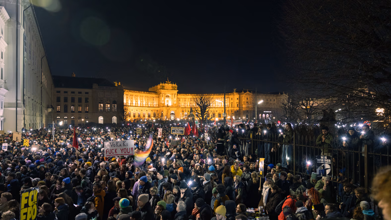 Około 35 tys. osób wyszło w czwartek 9 stycznia na ulice Wiednia, by zaprotestować przeciwko możliwości objęcia stanowiska kanclerza przez Herberta Kickla — lidera skrajnie prawicowej Austriackiej Partii Wolności (FPOe).