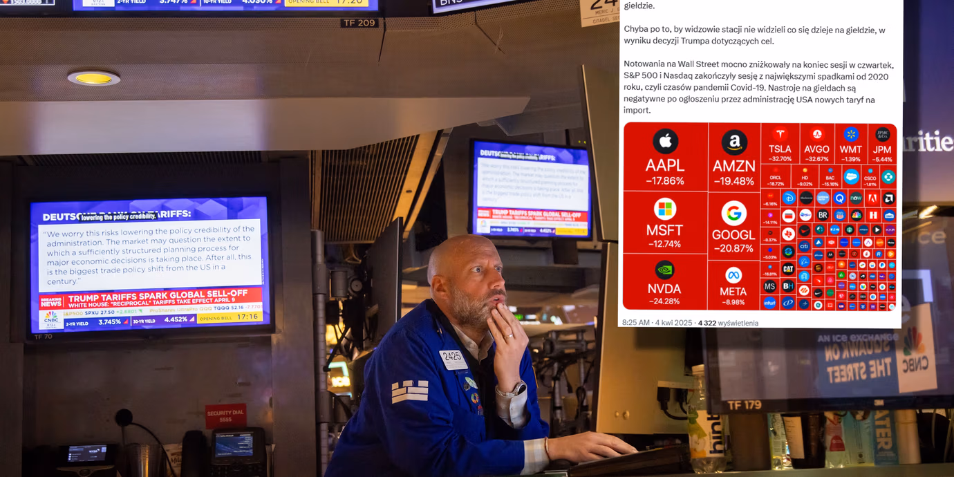 Usunięcie potwierdza korespondent RMF FM w USA Paweł Żuchowski. "Telewizja FOX News zdjęła wczoraj z ekranu pasek z notowaniami na giełdzie. Chyba po to, by widzowie stacji nie widzieli co się dzieje na giełdzie, w wyniku decyzji Trumpa dotyczących cel" — napisał na platformie X.