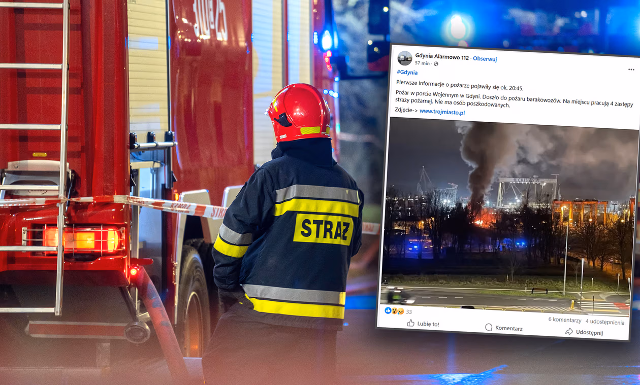 Na terenie Portu Wojennego Gdynia przy ul. Śmidowicza w Gdyni, doszło do pożaru kontenera socjalnego. W akcji gaśniczej udział brały 3 zastępy Państwowej Straży Pożarnej oraz jeden zastęp Wojskowej Straży Pożarnej KPW Gdynia. Pożar został opanowany, trwa dogaszanie. Przyczyny pożaru ustalane będą przez właściwe służby