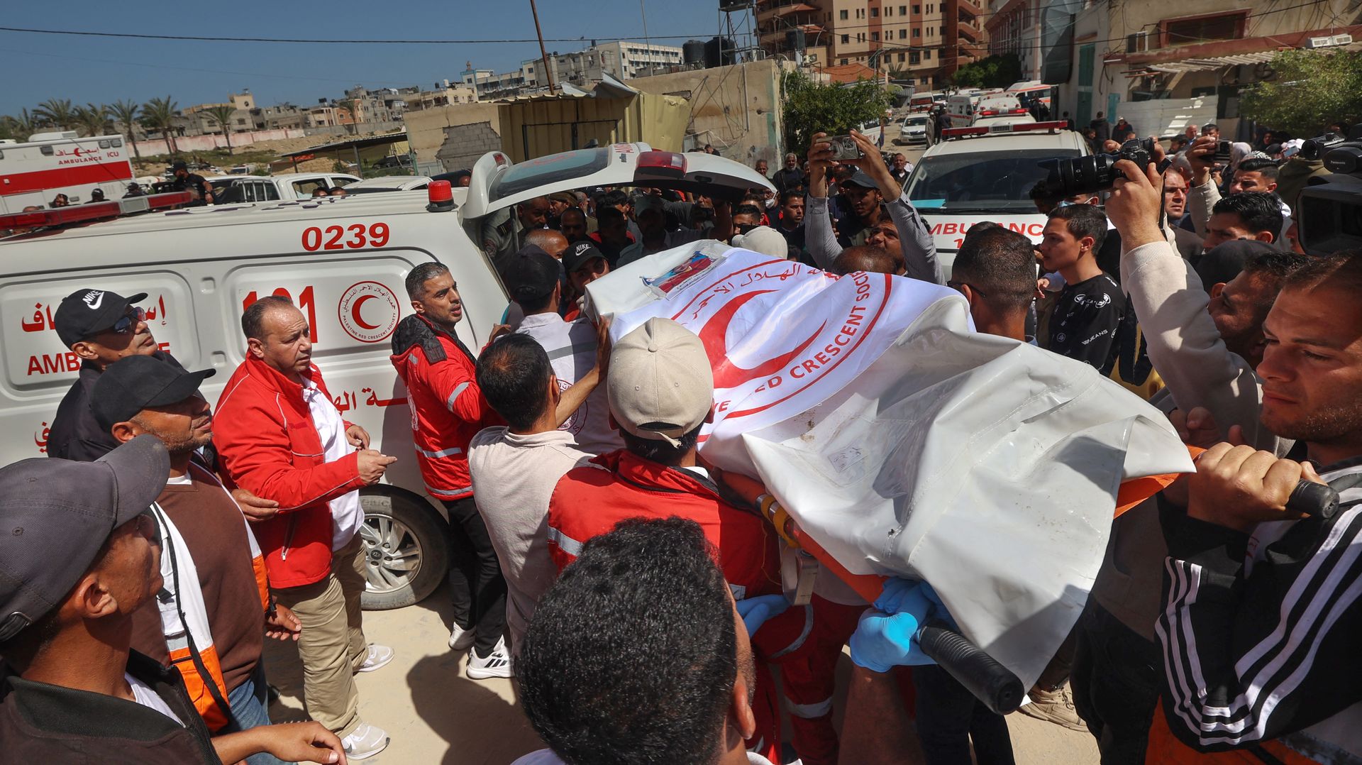 Na przełomie marca i kwietnia 2025 w strefie Gazy odkryto masowy grób zawierający 15 ciał. Pochowano tam 8 medyków z palestyńskiego Czerwonego Krzyża, 6 pracowników palestyńskiej obrony cywilnej (w dużej mierze też medyków i paramedyków) oraz jednego pracownika ONZ. Niektóre ofiary miały związane z tyłu ręce, jak podaje m.in. Guardian czy BCC, powołując się na dr. Ahmeda al-Farrę, lekarza ze szpitala imienia Nasera w Chan Junus, który oglądał zwłoki.